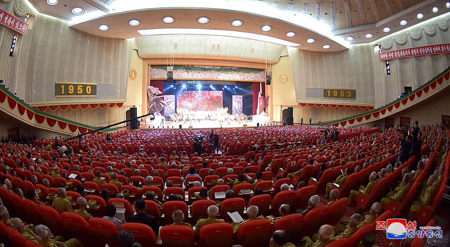 Byly předneseny projevy. Řečníci zdůraznili, že vážený nejvyšší vůdce soudruh Kim Čong Un doufá, že váleční veteráni budou dlouho žít a těšit se dobrému zdravotnímu stavu a budou dobře učit a vést budoucí generace, aby neustále nesly vpřed pochodeň revoluce, a že se cítí sebejistě, dokud jsou veteráni naživu. Vyzvali válečné veterány, aby oslavili svůj život jako dobří poslové revoluce a pedagogové, kteří hlouběji vštěpují vznešeného ducha a bojové rysy vyrůstajícím generacím v souladu se záměrem strany.