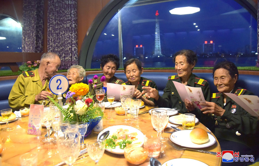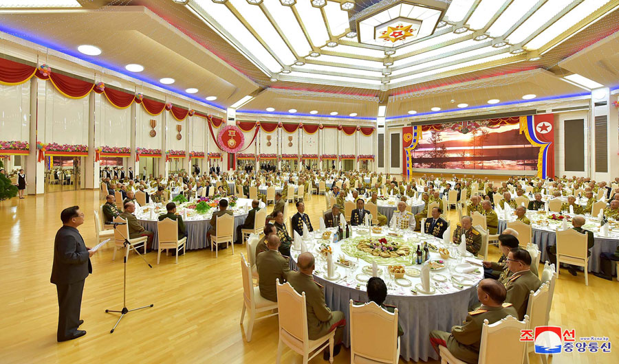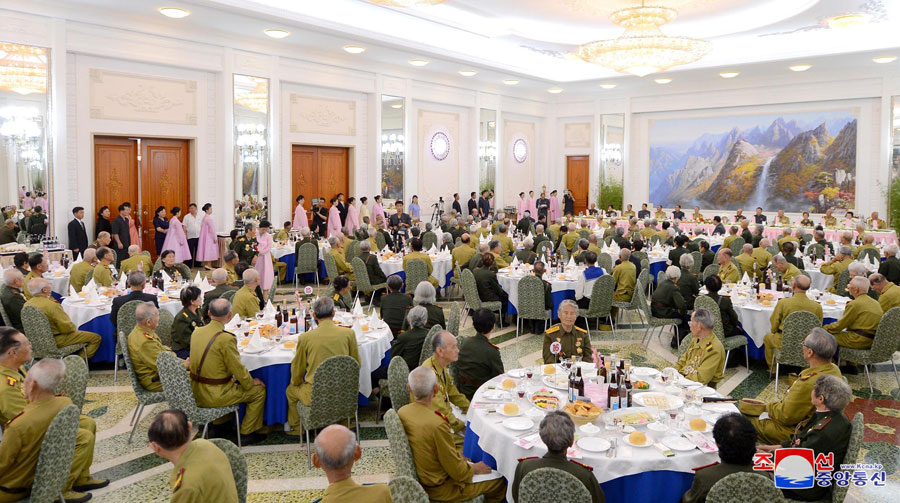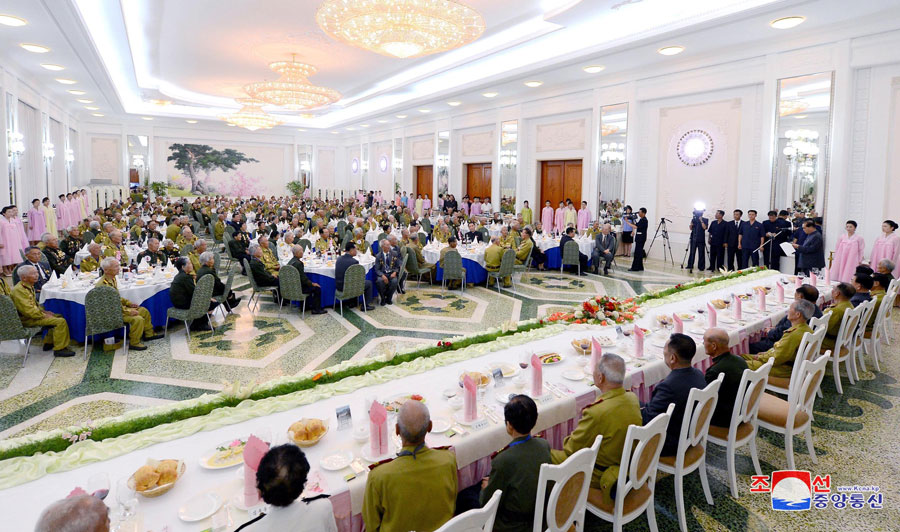 Banketu se zúčastnili a válečným veteránům poblahořáli soudruh Kim Jong Nam, člen prezídia Politického byra ÚV KSP a předseda prezídia Nejvyššího lidového shromáždění KLDR; soudruh Čche Rjong He, člen prezídia Politického byra ÚV KSP, místopředseda Komise pro státní záležitosti KLDR a místopředseda ÚV KSP; soudruh Pak Pong Ču, člen prezídia Politického byra ÚV KSP, místopředseda Komise pro státní záležitosti KLDR a předseda vlády, a další vysocí funkcionáři strany a vlády a vedoucí představitelé orgánů ozbrojených sil.