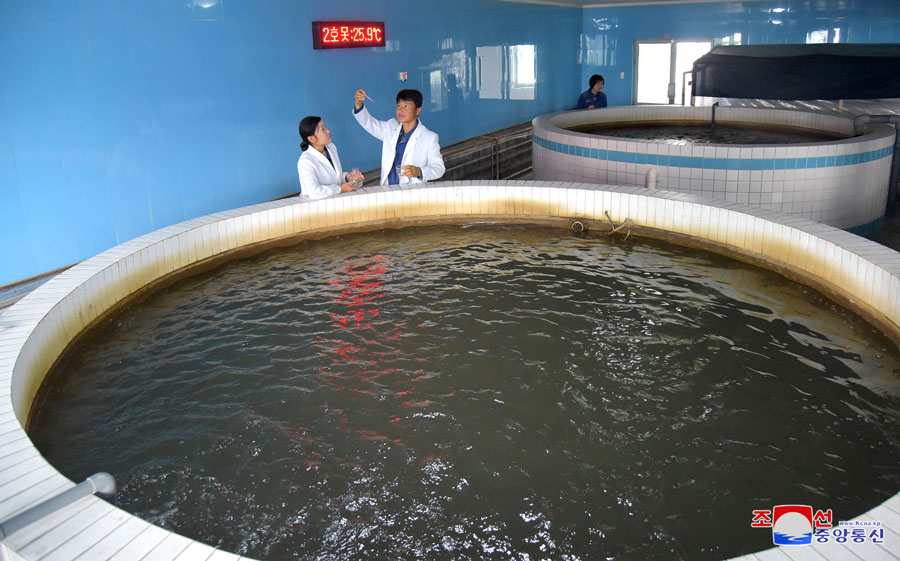 Soudruh Kim Čong Un poskytl polní pokyny rybím farmám jednotky 810 Korejské lidové armády