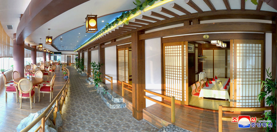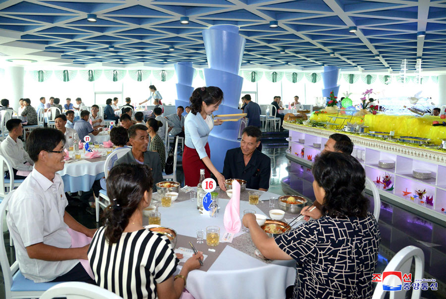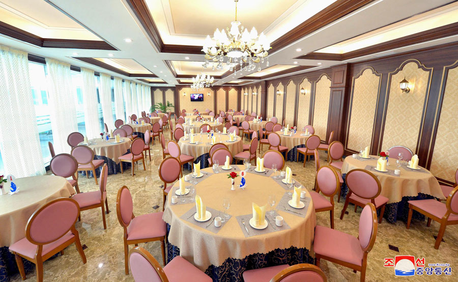 Pchjongjang, 30. července čučche 107 (2018) (KCNA) – Pchjongjangská rybí restaurace Tedonggang, postavená v osobitém stylu na malebném břehu řeky Tedong v Pchjongjangu, zahájila svůj provoz.