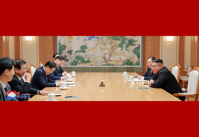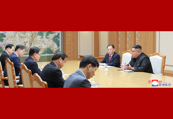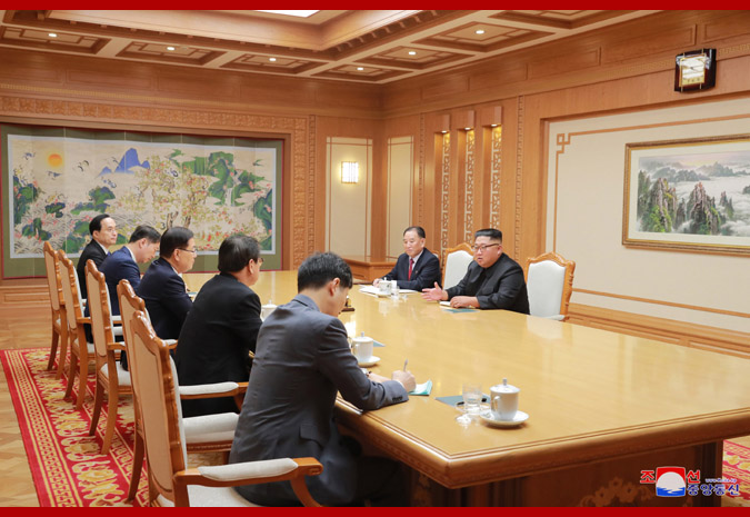 Rozhovory mezi váženým soudruhem nejvyšším vůdcem a delegací zvláštního vyslance prezidenta Mun Če Ina probíhaly v krajanské a srdečné atmosféře.