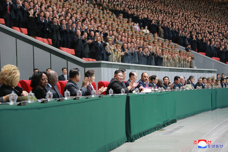 Na pozvání byli přítomni vedoucí delegací, zvláštní vyslanci a osobnosti z různých zemí, kteří se účastní oslav 70. výročí založení republiky, mezi nimi předseda stálého výboru Všečínského shromáždění lidových zástupců Čínské lidové republiky Li Čan-šu; první místopředseda Státní rady Kubánské republiky a první místopředseda Rady ministrů Kubánské republiky Salvador Antonio Valdés Mesa a jeho manželka; zástupce regionálního tajemníka syrské Socialistické strany arabské obrody Helal Al-Helal a předsedkyně Rady Ruské federace Valentina Ivanovna Matvijenková. Dále vedoucí blahopřejné skupiny Korejců v Japonsku Pu Jong Uk; vedoucí blahopřejné delegace Generálního svazu Korejců v Číně Čche Un Bok; a vedoucí delegace Mezinárodní sjednocené konfederace Korejců Kim Čchil Song.