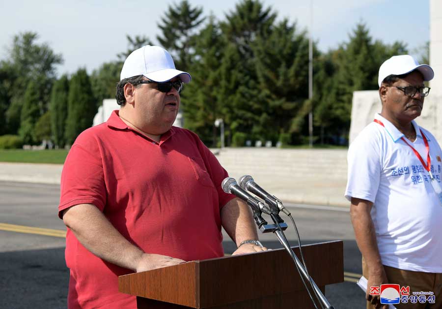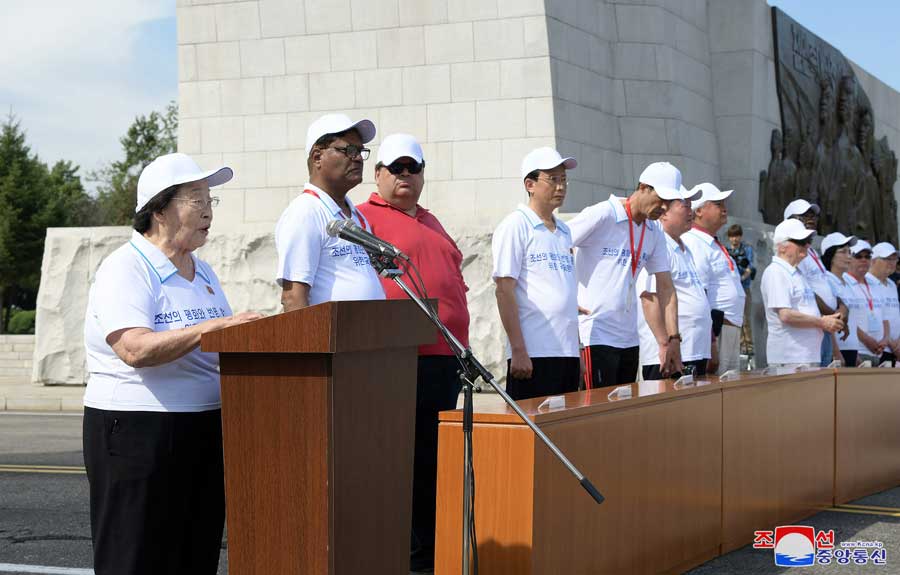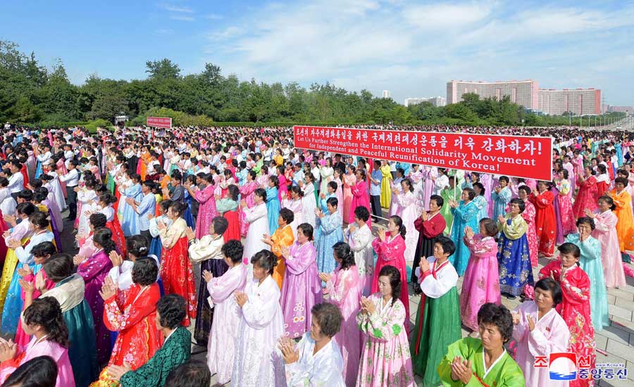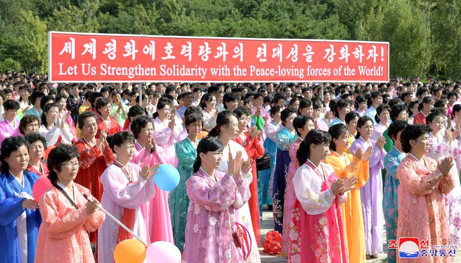 Přítomna byla soudružka Kim Čong Suk, předsedkyně Korejského výboru pro kulturní vztahy se zahraničními zeměmi a předsedkyně Korejského výboru pro solidaritu s lidem světa, soudruh Ri Son Gwon, předseda Výboru pro mírové znovusjednocení země, příslušní funkcionáři a pracující lid města Pchjongjangu.