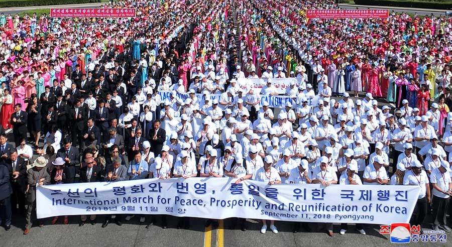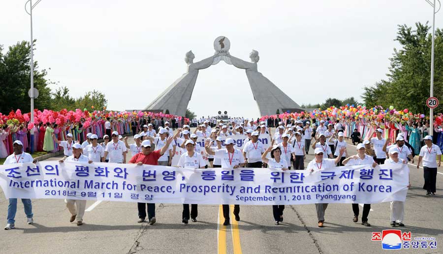 Pchjongjang, 11. září čučche 107 (2018) (KCNA) – Mezinárodní pochod za mír, prosperitu a znovusjednocení Koreje se uskutečnil v Pchjongjangu v úterý 11. září.