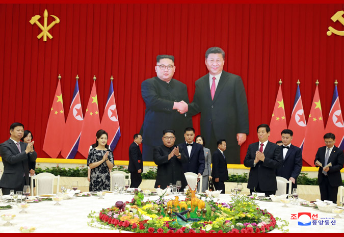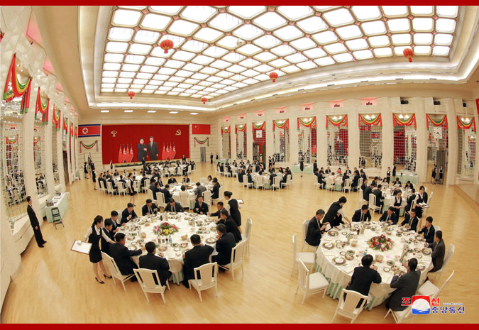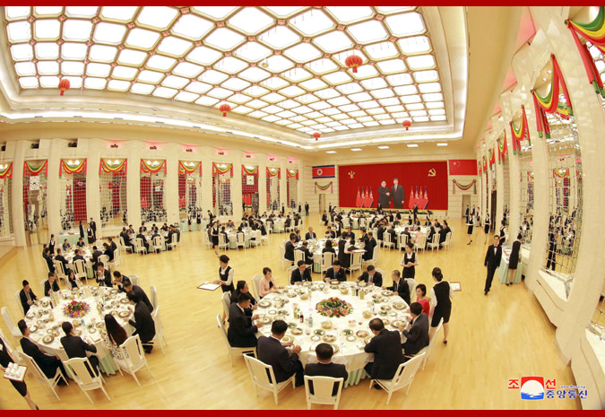 Soudruh Kim Čong Un toho večera pořádal recepci na počest soudruha Li Šan-ču a jeho delegace.