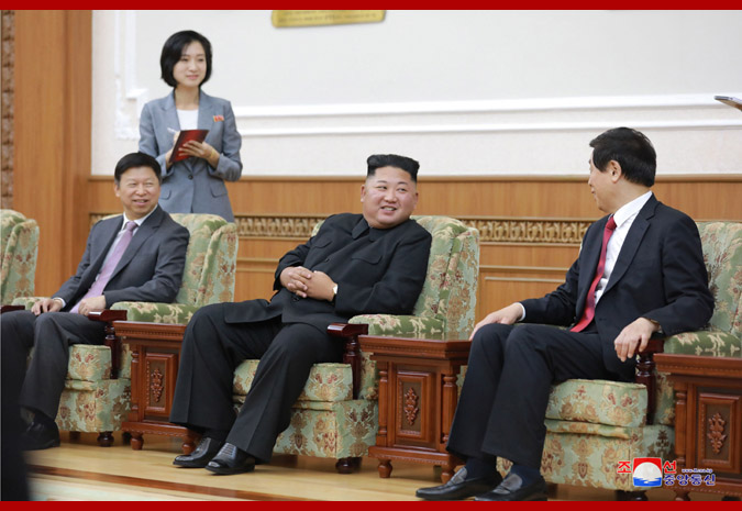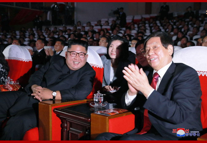 Pchjongjang, 11. září čučche 107 (2018) (KCNA) – Předseda Korejské strany práce, předseda Komise pro státní záležitosti KLDR, vrchní velitel Korejské lidové armády, nejvyšší vůdce naší strany, státu a armády soudruh Kim Čong Un uspořádal v pondělí 10. září umělecké představení a recepci pro stranickou a vládní delegaci Čínské lidové republiky, vedenou soudruhem Li Šan-ču, členem stálého výboru politického byra Ústředního výboru Komunistické strany Číny a předsedou stálého výboru Všečínského shromáždění lidových zástupců Čínské lidové republiky, který je zvláštním vyslancem soudruha Si Ťin-pchinga, generálního tajemníka ÚV KS Číny a prezidenta ČLR.