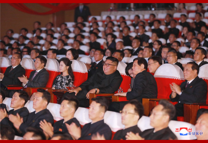 Nejvyšší vůdce naší strany, státu a armády soudruh Kim Čong Un a soudružka Ri Sol Ču sledovali představení společně se soudruhem Li Čan-šu a členy jeho delegace.