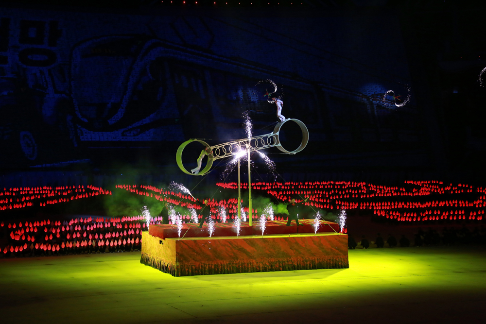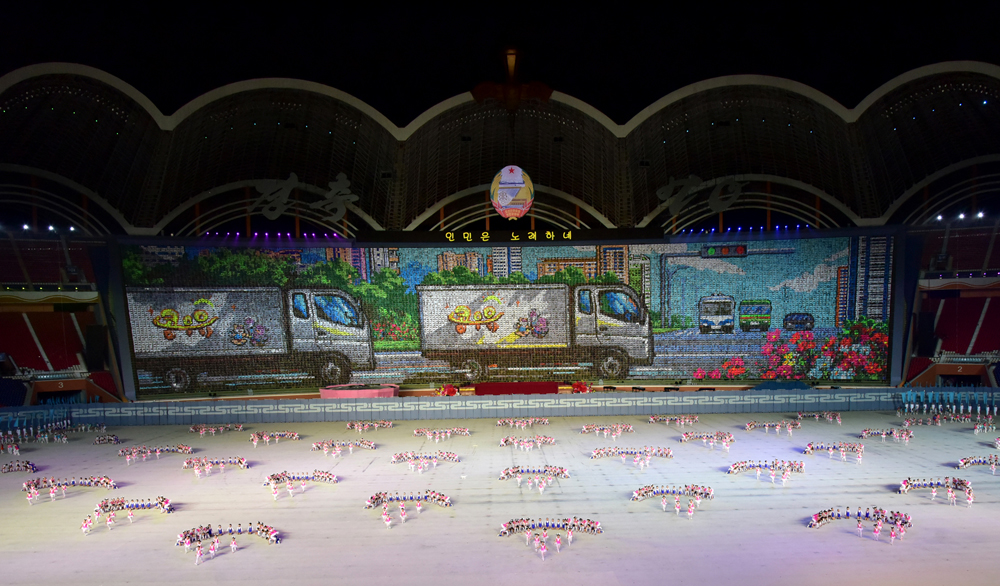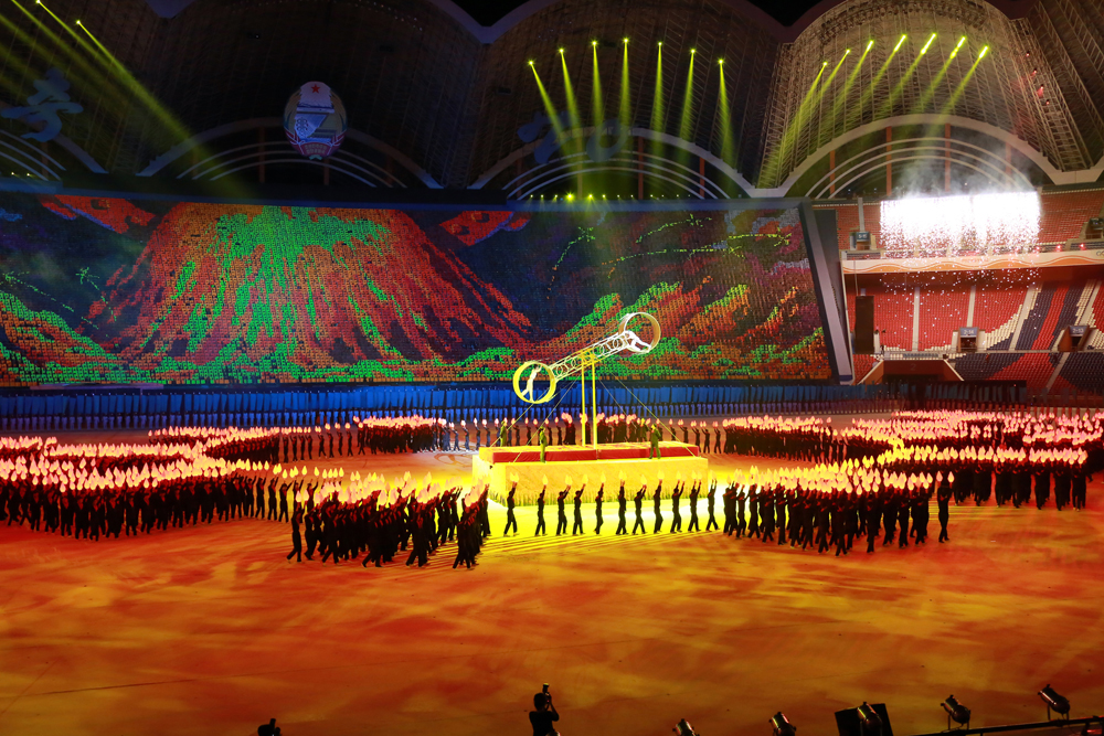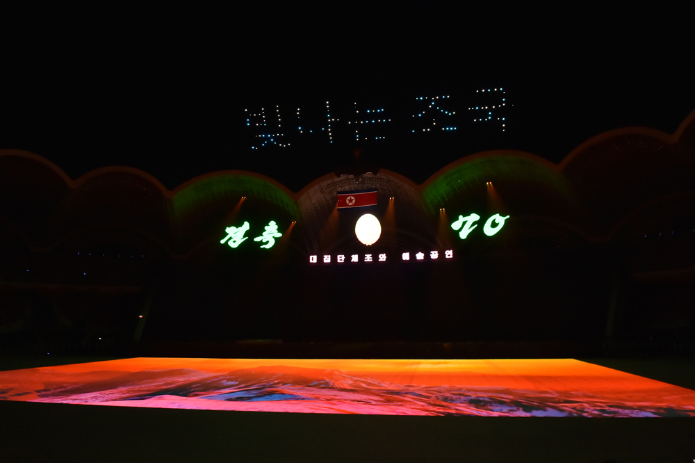 Korejská lidově demokratická republika již získala celosvětovou slávu s masovým tělocvičným a uměleckým představením „Arirang“, který bylo zapsáno jako největší masové tělocvičné a umělecké představení na světě do Guinnessovy knihy rekordů. Nyní znovu demonstruje mimořádnou podívanou u příležitosti 70. výročí vzniku KLDR.