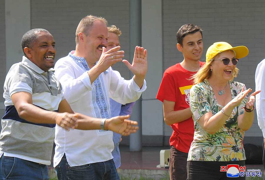 Následne sme sa presunuli do športového areálu, kde členovia medzinárodných delegácií súťažili v rôznych športových disciplínach, ako napríklad skákanie vo vreci, preťahovanie lanom a podobne. Potom nasledovalo pohostenie v miestnom bare, kde servírky zahrali a zaspievali tradičné kórejské piesne. Následne prebehla súťaž v spievaní medzi zahraničnými delegátmi. Zaspieval som tri kórejské piesne, a to S Vami zvíťazíme, venovanú drahému vodcovi súdruhovi Kim Čong Ilovi, ľudovú pesničku Arirang a Pieseň národnej obrany.