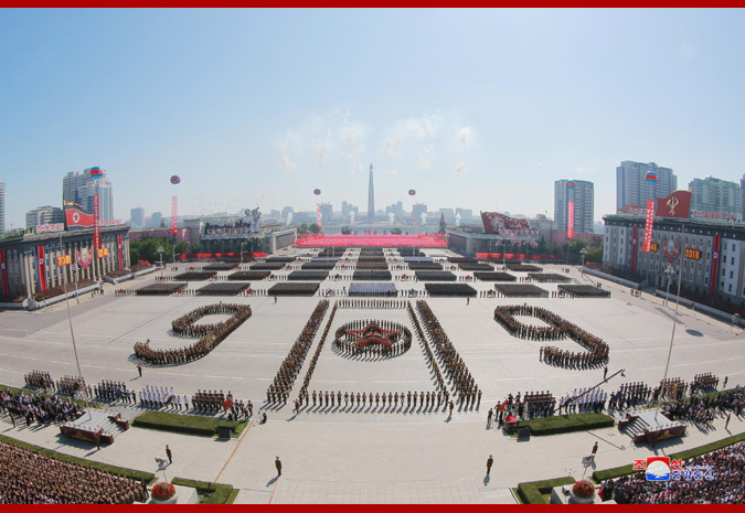 V deň 70. výročia vzniku KĽDR sa o 10. hodine uskutočnila vojenská prehliadka, ktorá mala opäť veľkolepú formu a zúčastnila sa jej aj naša delegácia. Na takýchto akciách z dôvodu bezpečnostných opatrení nie je možné vyhotovovať fotografické zábery, avšak celý záznam vojenskej prehliadky je možné pozrieť na internete (odkaz). Po vojenskej prehliadke nasledovala masová manifestácia, ktorej sa zúčastnili desaťtisíce občanov Pchjongjangu.