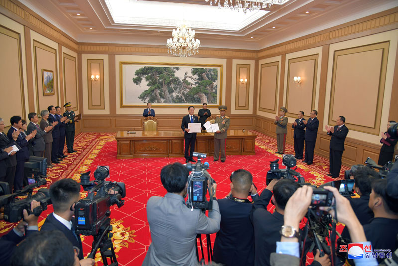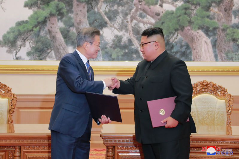 Předseda Korejské strany práce a předseda Komise pro státní záležitosti Korejské lidově demokratické republiky, nejvyšší vůdce naší strany, státu a armády soudruh Kim Čong Un 19. září spolu s prezidentem Mun Če Inem učinil společné prohlášení o „Zářijové společné pchjongjangské deklaraci“.
