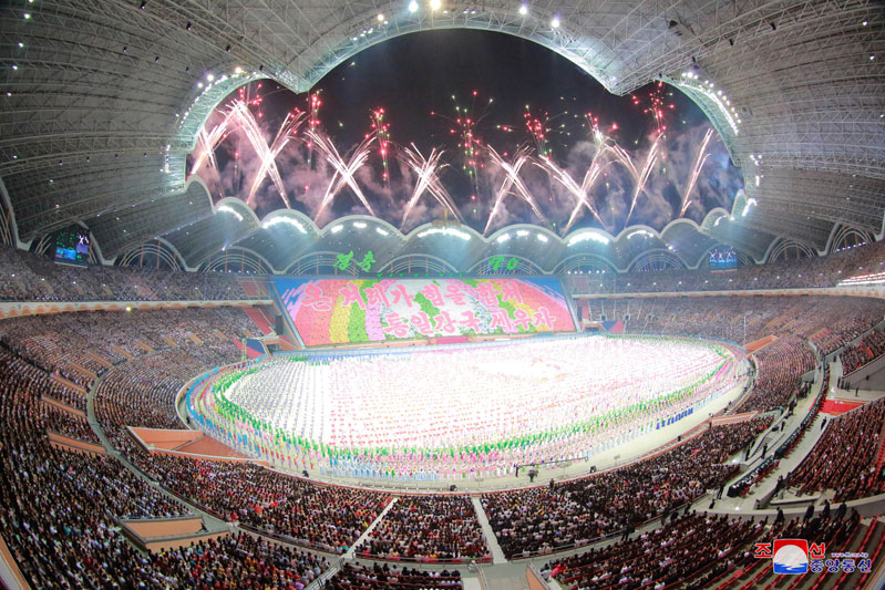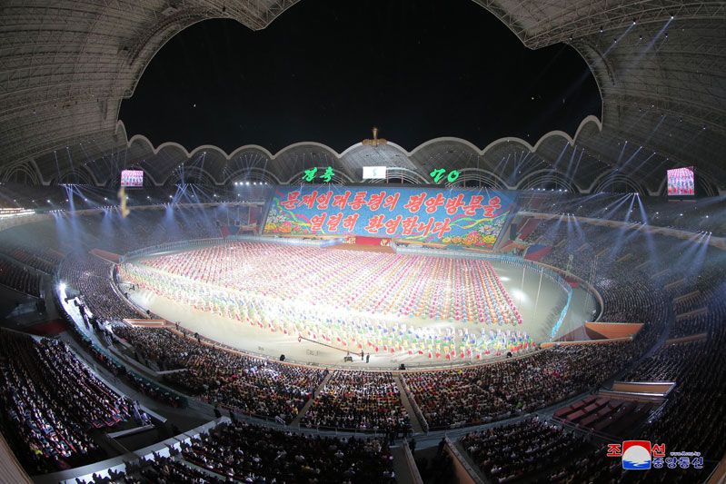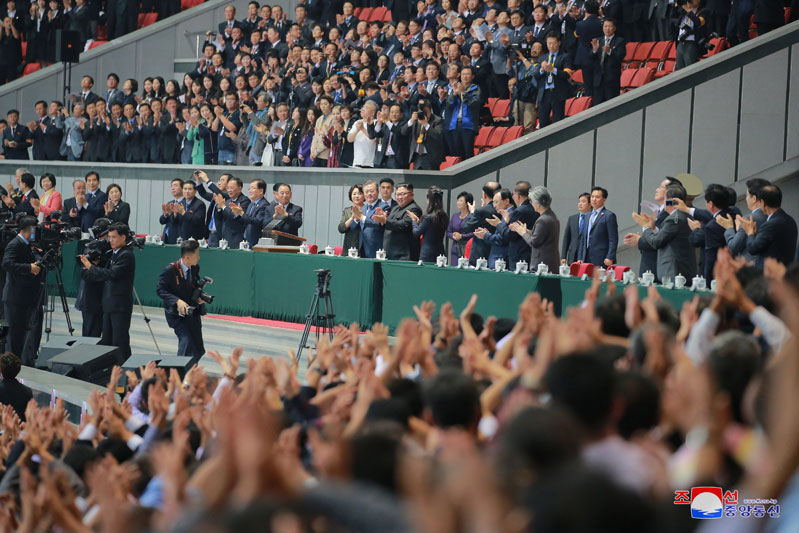 Předseda Korejské strany práce a předseda Komise pro státní záležitosti Korejské lidově demokratické republiky, nejvyšší vůdce naší strany, státu a armády soudruh Kim Čong Un společně s prezidentem Mun Če Inem ve středu 19. září zhlédl velké masové tělocvičné a umělecké představení na Stadionu 1. máje.