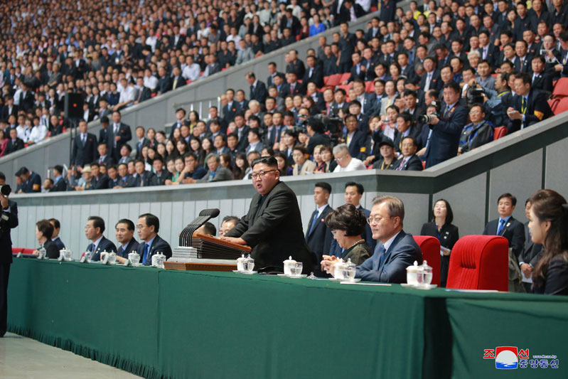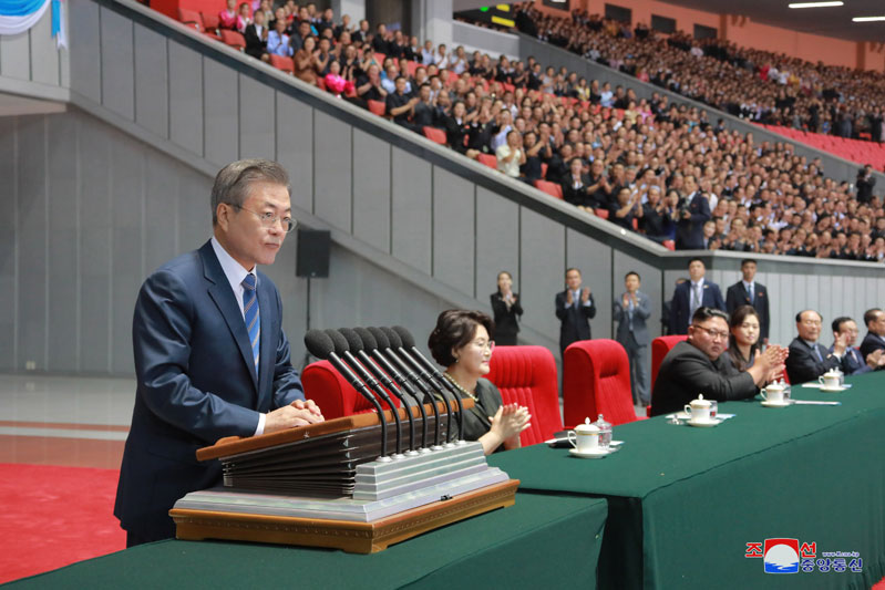 Poté prezident Mun Če In přednesl své upřímné poděkování občanům Pchjongjangu za vřelé přijetí a srdečnou pohostinnost, naplněné láskou ke svým krajanům, vyjádřil svou vůli plně rozvinout vztahu jihu a severu a urychlit mírovou budoucnost.