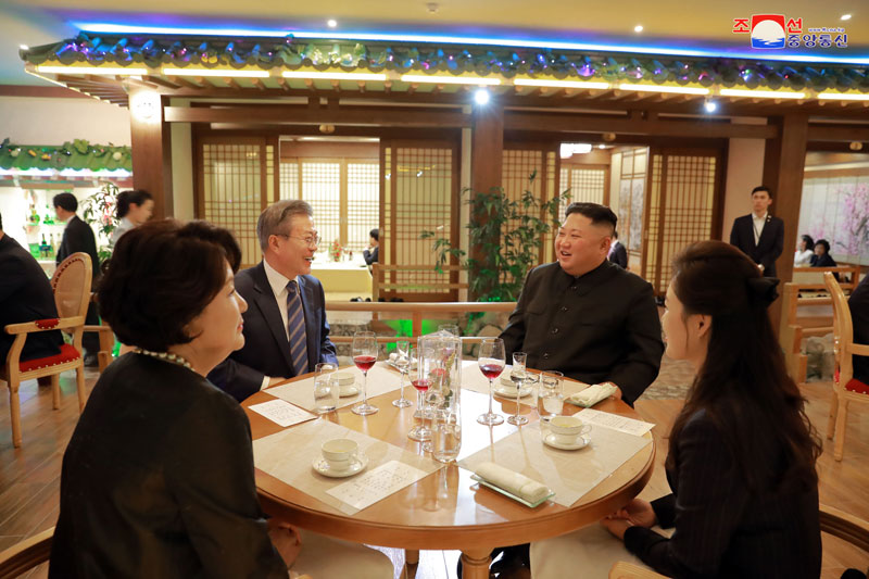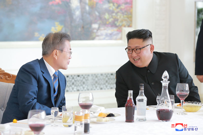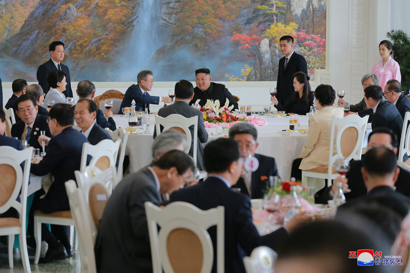 Předseda Korejské strany práce a předseda Komise pro státní záležitosti Korejské lidově demokratické republiky, nejvyšší vůdce naší strany, státu a armády soudruh Kim Čong Un ve středu 19. září uspořádal oběd pro prezidenta Mun Če Ina na návštěvě Pchjongjangu u příležitosti historického mezikorejského summitu.