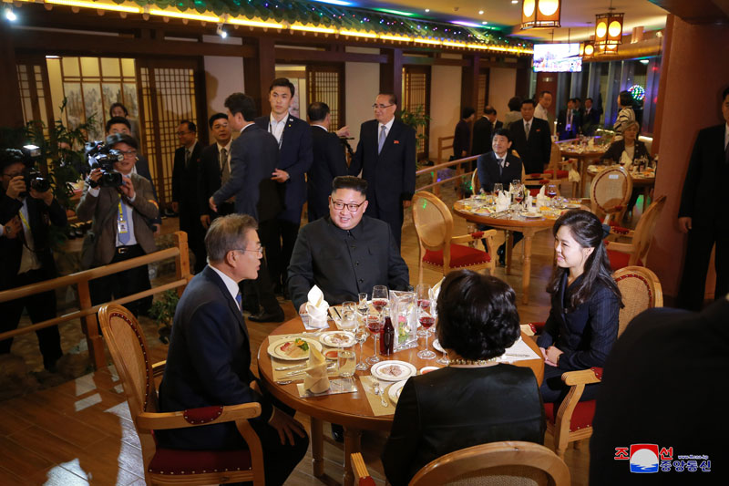 Předseda Korejské strany práce a předseda Komise pro státní záležitosti Korejské lidově demokratické republiky, nejvyšší vůdce naší strany, státu a armády soudruh Kim Čong Un ve středu 19. září uspořádal večeři pro prezidenta Mun Če Ina v pchjongjangské rybí restauraci Tedonggang.