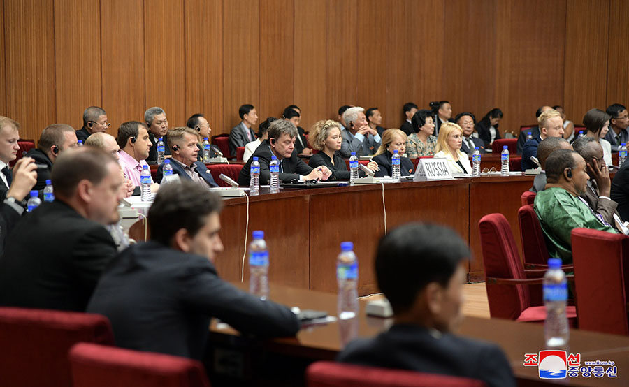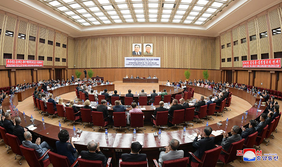 Projev doktora Dermota Hudsona, předsedy Společnosti pro studium politiky songun Spojeného království, na mezinárodní konferenci o myšlence čučche v Pchjongjangu 8. září čučche 107 (2018) u příležitosti 70. výročí založení Korejské lidově demokratické republiky