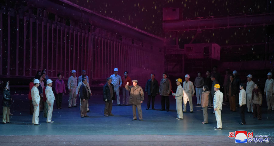 Pchjongjang, 8. října čučche 107 (2018) (KCNA) – Drama „Padá rudý sníh“ bylo uvedeno v Národním divadle v pondělí 8. září u příležitosti 21. výročí zvolení velkého vůdce soudruha Kim Čong Ila generálním tajemníkem Korejské strany práce.