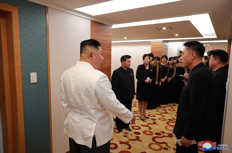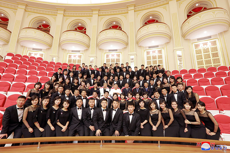 Pchjongjang, 11. října čučche 107 (2018) (KCNA) – Předseda Korejské strany práce, předseda Komise pro státní záležitosti KLDR a vrchní velitel Korejské lidové armády, nejvyšší vůdce naší strany, státu a armády soudruh Kim Čong Un ve středu 10. října vedl na místě práci Divadla orchestru Samčijon v předvečer jeho otevření.
