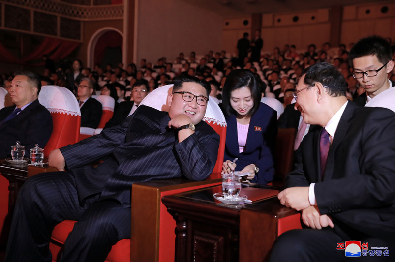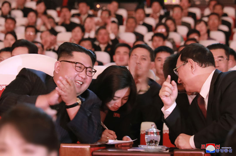 Pchjongjang, 4. listopadu čučche 107 (2018) (KCNA) – Předseda Korejské strany práce, předseda Komise pro státní záležitosti Korejské lidově demokratické republiky a vrchní velitel Korejské lidové armády, nejvyšší vůdce naší strany, státu a armády soudruh Kim Čong Un zhlédl 3. listopadu v Uměleckém divadle Mansude společné vystoupení korejských a čínských umělců. Spolu s ním představení sledoval soudruh Čche Rjong He, člen předsednictva politického byra Ústředního výboru Korejské strany práce, místopředseda Komise pro státní záležitosti KLDR a místopředseda ÚV KSP; soudruh Ri Su Jong, člen politického byra a místopředseda ÚV KSP; soudružka Kim Jo Čong, náhradnice politického byra a první zástupkyně vedoucího oddělení ÚV KSP; soudruh Pak Čchun Nam, ministr kultury; členové ÚV KSP, tvůrci, umělci a učitelé v oblasti kultury a umění. Pozváni byli pracovníci čínského velvyslanectví.