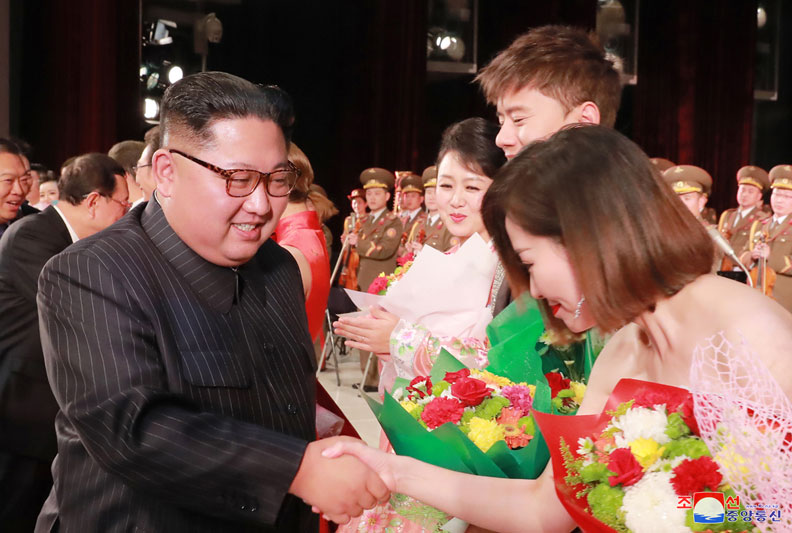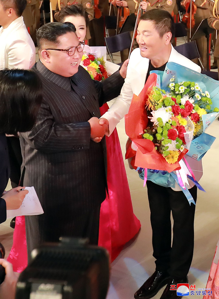 Vážený soudruh nejvyšší vůdce vystoupil na jeviště a se slavnými umělci si potřásl rukama a blahopřál jim k jejich představení. S obdivem uvedl, že umělci z Číny, kteří vystoupili na koncertě, jsou skutečně známí, slyšel o nich a je velmi rád, že měl příležitost setkat se s nimi osobně. Poznamenal, že všichni umělci z Číny jsou plni emocí, mají jedinečný charakter a účinkují jemným uměleckým způsobem, kterému věnují svou duši. Řekl, že koncert byl natolik působivý, že si ani nevšiml, jak běží čas, a chtěl bych ho sledovat znovu, a poděkoval známým čínským uměleckým osobnostem za nádherný koncert v Pchjongjangu.