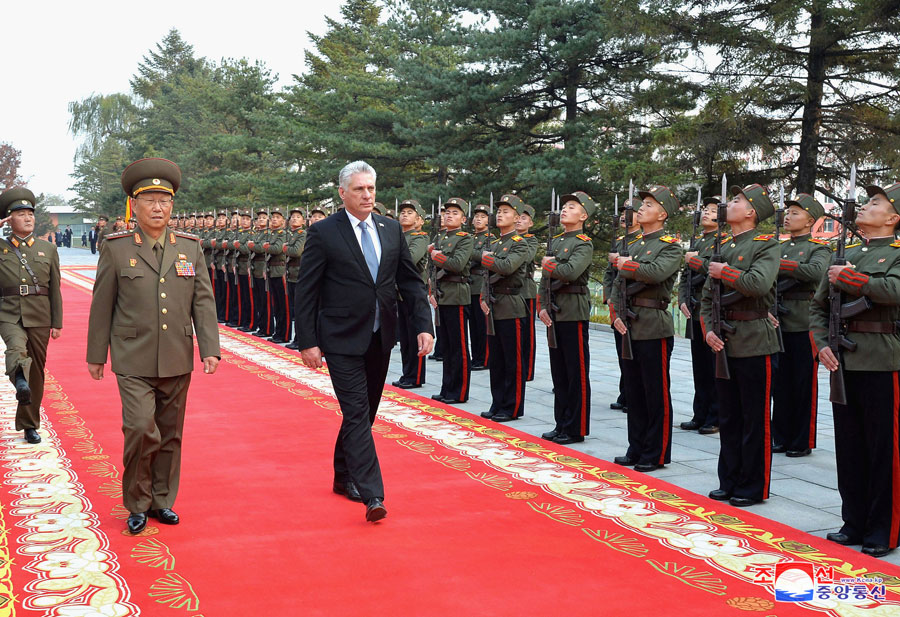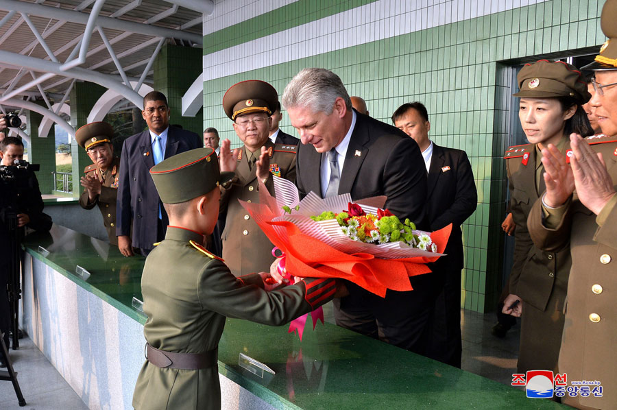 Předseda Státní rady a předseda Rady ministrů Kubánské republiky soudruh Miguel Mario Díaz-Canel Bermúdez  navštívil v pondělí 5. listopadu revoluční školu Mangjongde. Přivítal a doprovázel ho náčelník Generálního politického byra Korejské lidové armády armádní generál pozemních vojsk soudruh Kim Su Gil.