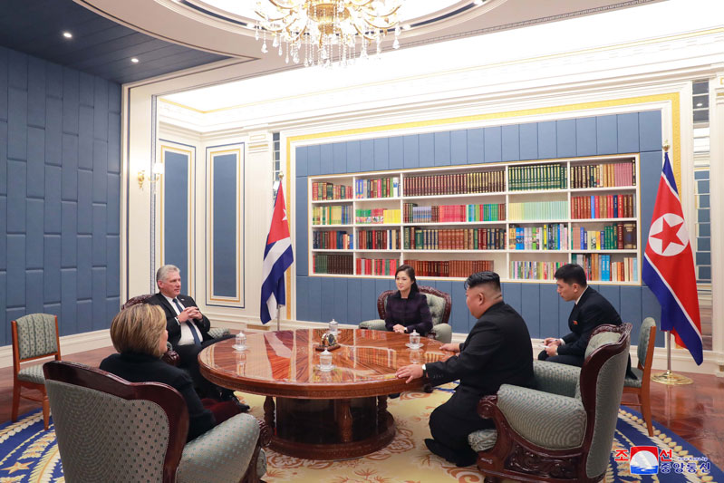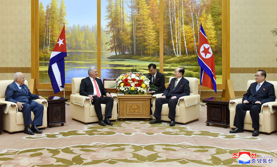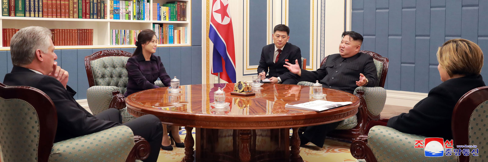 Předseda Korejské strany práce, předseda Komise pro státní záležitosti Korejské lidově demokratické republiky, nejvyšší vůdce naší strany, státu a armády soudruh Kim Čong Un pozval soudruha Miguela Maria Díaz-Canela Bermúdeze, předsedu Státní rady a předsedu Rady ministrů Kubánské republiky, do budovy sekretariátu Ústředního výboru Korejské strany práce a v pondělí 5. listopadu odpoledne s ním uspořádal přátelské setkání, rozhovor a večeři.