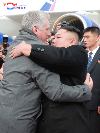 Soudruh Kim Čong Un se dostavil na letiště spolu se svou manželkou Ri Sol Ču a srdečně se rozloučil se soudruhem Miguelem Mariem Díaz-Canelem Bermúdezem a jeho ženou Lis Cuestou Perasou.