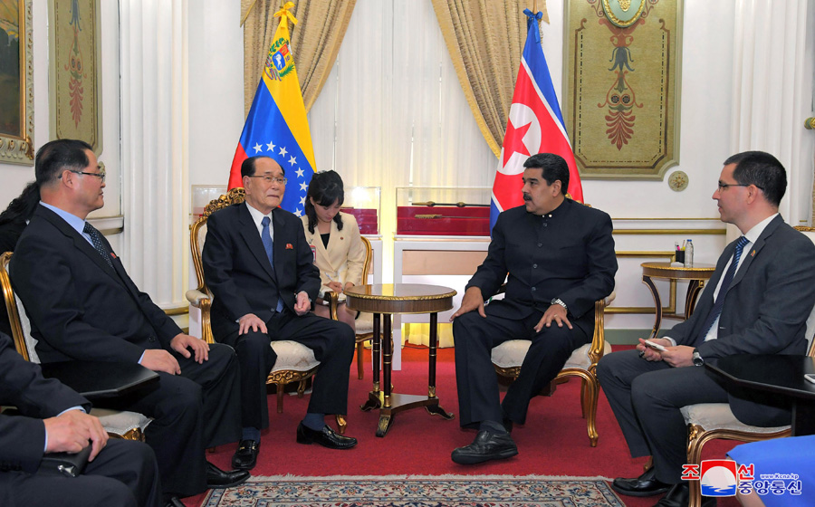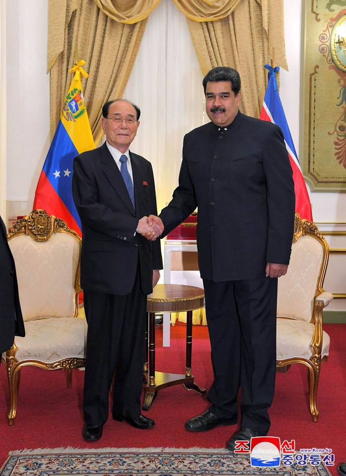 Pchjongjang, 30. novembra čučche 107 (2018) (KCNA) – Vo venezuelskom prezidentskom paláci sa v utorok 27. novembra konali rokovania medzi predsedom prezídia Najvyššieho ľudového zhromaždenia Kórejskej ľudovodemokratickej republiky súdruhom Kim Jong Namom a prezidentom Venezuely Nicolásom Madurom Morosom.
