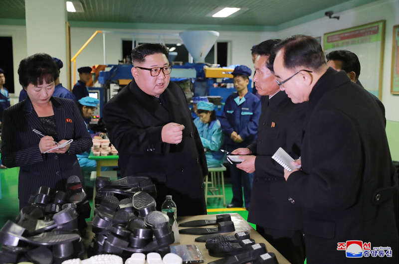 Pchjongjang, 3. prosince čučche 107 (2018) (KCNA) – Předseda Korejské strany práce, předseda Komise pro státní záležitosti Korejské lidově demokratické republiky a vrchní velitel Korejské lidové armády, nejvyšší vůdce naší strany, státu a armády soudruh Kim Čong Un vedl na místě práci Wonsanské obuvní továrny. Doprovázel ho soudruh Hwang Pjong So, první zástupce vedoucího oddělení Ústředního výboru KSP; soudruh Čo Jong Won, zástupce vedoucího oddělení Ústředního výboru KSP; a soudruzi Kim Čchang Son a Ma Won Čchun, funkcionáři Komise pro státní záležitosti.