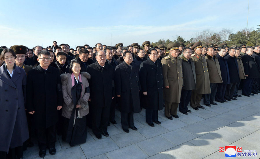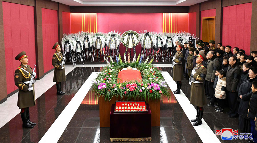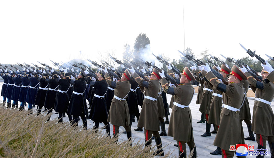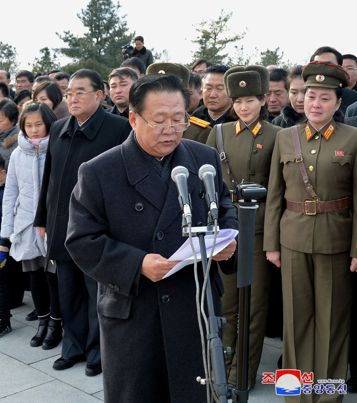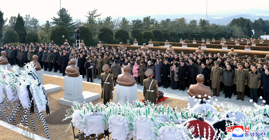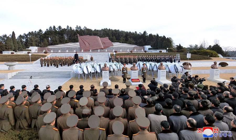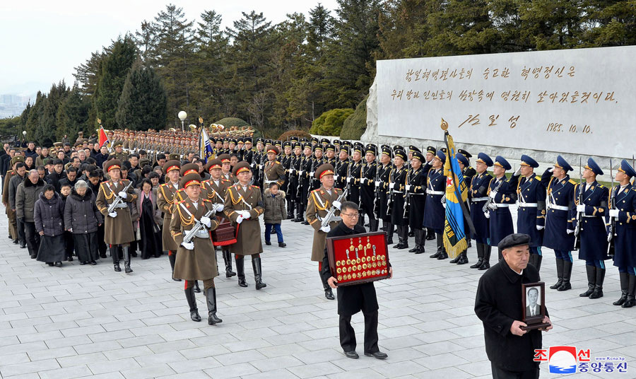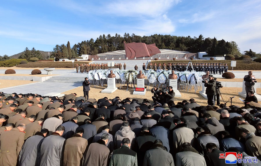 Na hrob bol položený veniec nesúci žiarivé meno váženého najvyššieho vodcu súdruha Kim Čong Una a vence v mene Ústredného výboru KSP, prezídia Najvyššieho ľudového zhromaždenia KĽDR a kabinetu KĽDR.