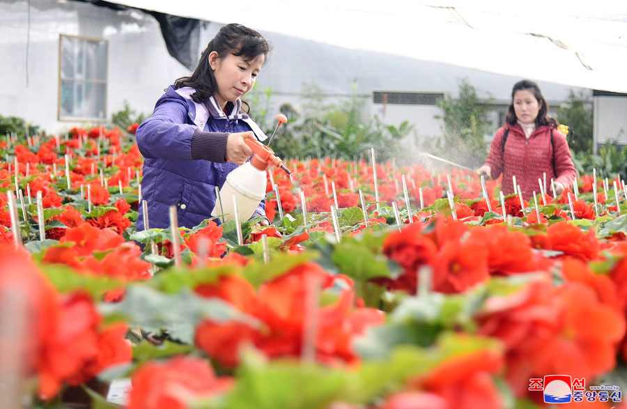 Pchjongjang, 11. prosince čučche 107 (2018) (KCNA) – Pracovníci skleníku kimčongilií Ústřední botanické zahrady pěstují nesmrtelné květiny s hlubokou touhu po velkém generálovi.