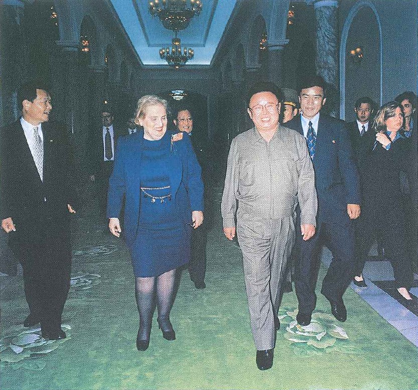 Kim Čong Il s ministryní zahraničních věcí USA Madeleine Albrightovou. Říjen 2000.