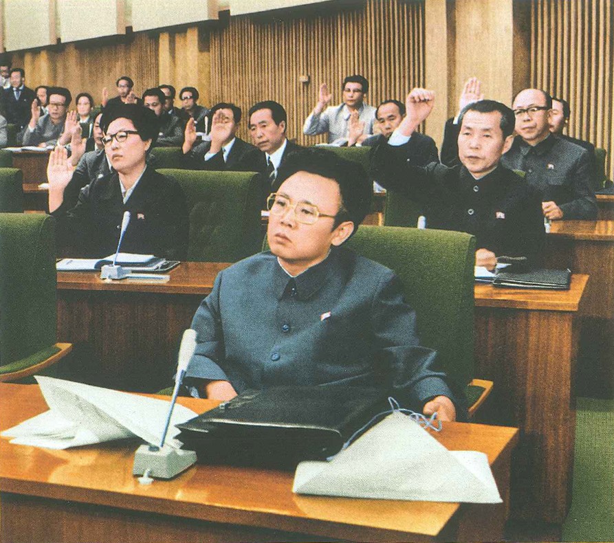 Kim Čong Il zvolen do prezídia politbyra Ústředního výboru Korejské strany práce na 1. plenárním zasedání 6. ÚV KSP. Říjen 1980.