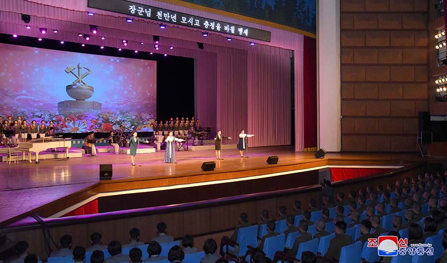 Setkání začalo čtením revolučního románu a ženským sólem „Rozjímání o generálovi“. Účinkující připomněli revoluční život soudruha Kim Čong Ila, který přinesl rozkvět mládežnického hnutí orientovaného na čučche. Zaníceně hovořili o vřelé láskyplné péči velkého generála, který se postaral dokonce i o uniformy a boty pro školáky po celé zemi a věnoval jim svou otcovskou lásku. Uvedli, že korejské mládežnické hnutí se těší největšímu rozkvětu svého rozvoje pod vedením váženého nejvyššího vůdce soudruha Kim Čong Una, a složili přísahu, že projeví čest předvoje a úderné brigády a skvěle uskuteční očekávání neskonale velkých mužů na této zemi.
