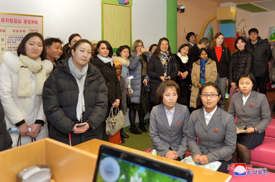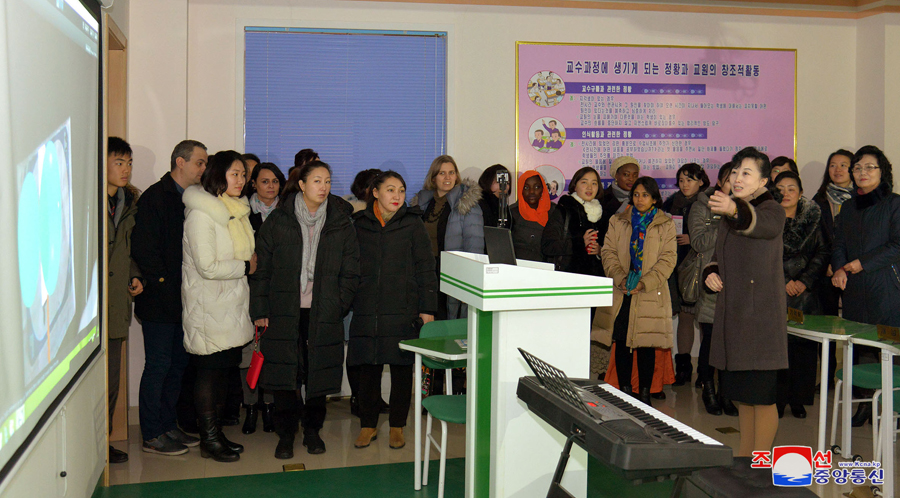 Pchjongjang, 20. prosince čučche 107 (2018) (KCNA) – Ženy ze zahraničních velvyslanectví a úřadů mezinárodních organizací v KLDR navštívily 19. prosince Pchjongjangský pedagogický institut u příležitosti 101. výročí narození hrdinky protijaponské války soudružky Kim Čong Suk.