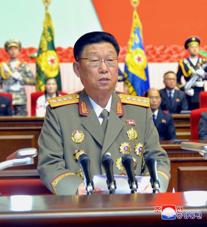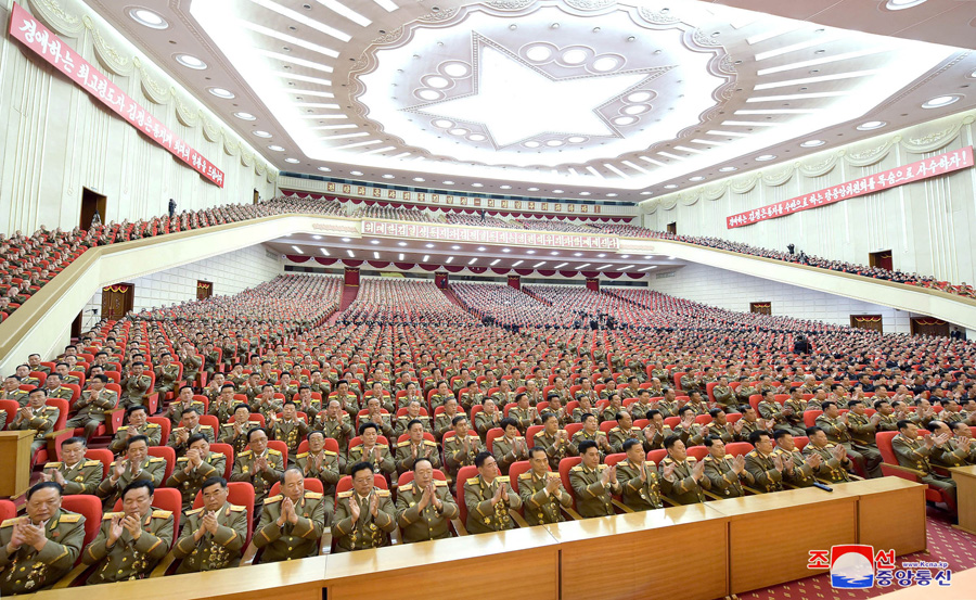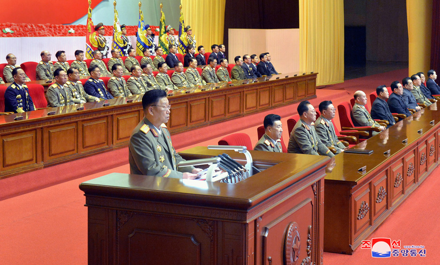 Armádní generál soudruh Kim Su Gil, náhradník politického byra Ústředního výboru Korejské strany práce a náčelník Generálního politického byra Korejské lidové armády, přednesl zprávu. Vyzdvihl, že uvedení váženého nejvyššího vůdce soudruha Kim Čong Una, neskonale velkého muže, ke kormidlu revolučních sil, v souladu s jednomyslným hlasem vůle a přání všeho lidu a sloužícího mužstva, je velikou revoluční událostí, zvláště zapsanou v dějinách budování čučchejské armády a dějinách země. Díky jeho přijetí vrchního velení KLA byla úspěšně vyřešena otázka vedení armády, které má velký význam při uskutečňování a završování revoluční věci čučche, a byla zajištěna spolehlivá záruka pevného zachování povahy a charakteru KLA jako revolučních ozbrojených sil KSP a zajištění trvalé kontinuity dějin a tradic vítězství, uvedl referent a pokračoval: