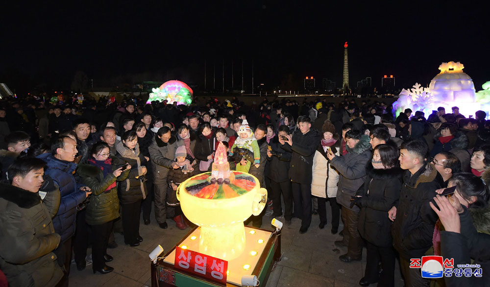 Pchjongjang, 31. decembra čučche 107 (2018) (KCNA) – V pondelok 31. decembra čučche 107 (2018) bol na Námestí Kim Ir Sena zahájený Pchjongjanský festival ľadových sôch 2019.