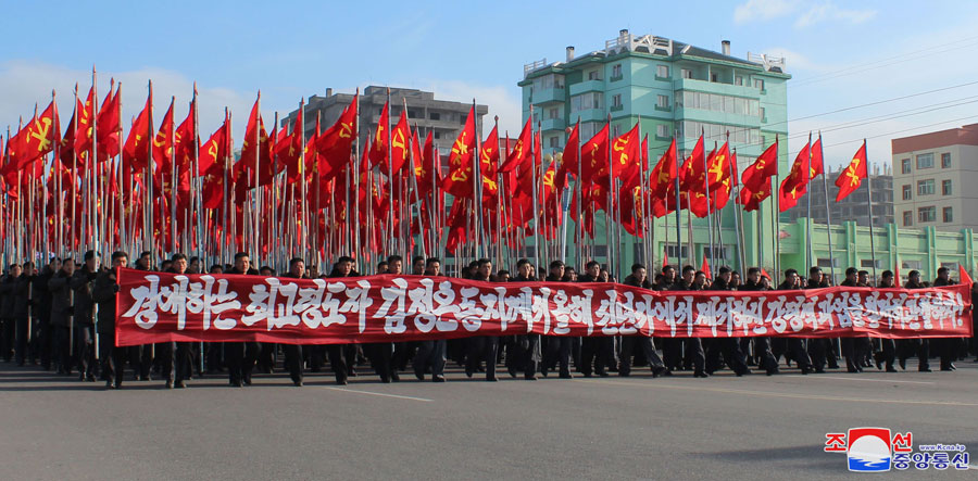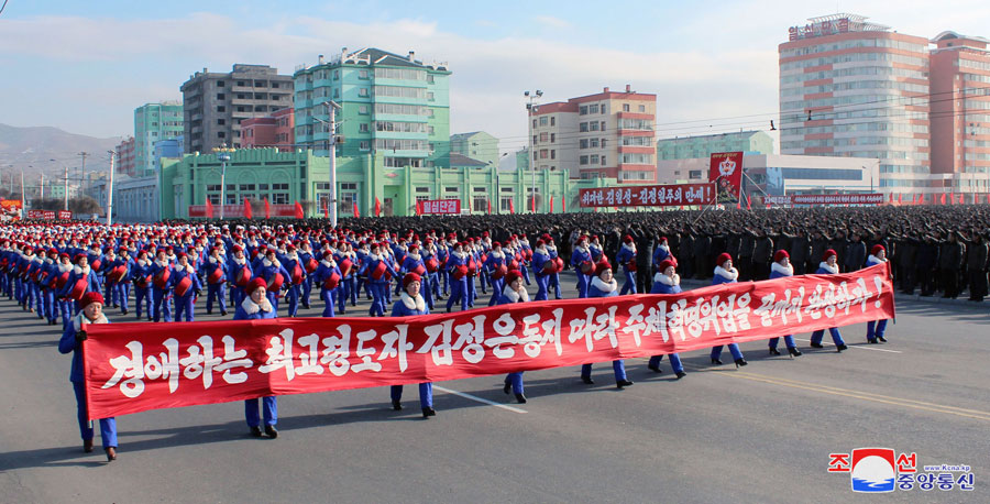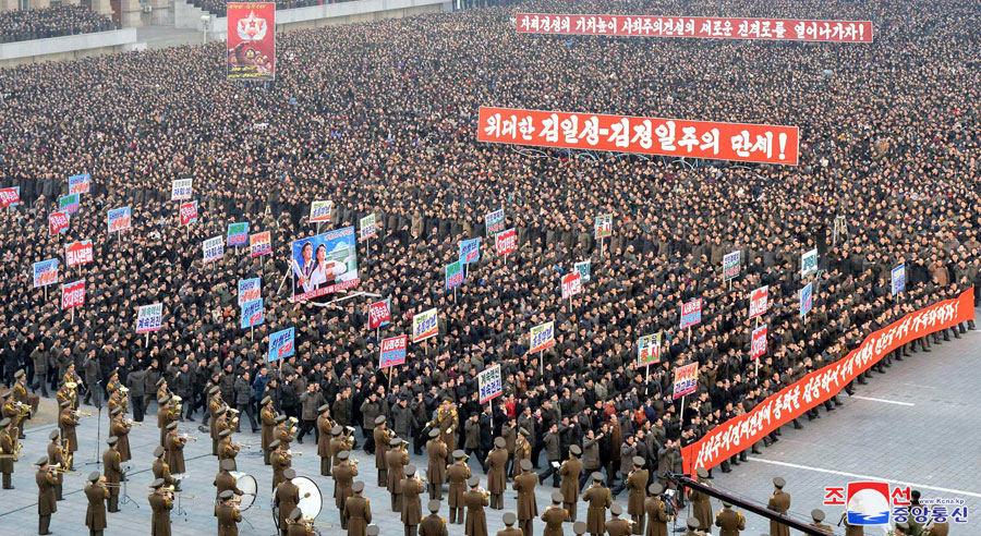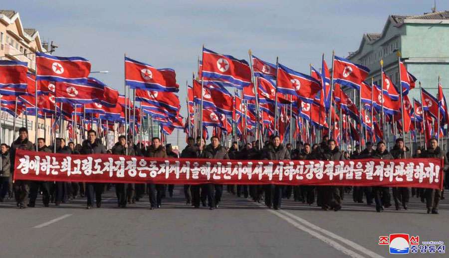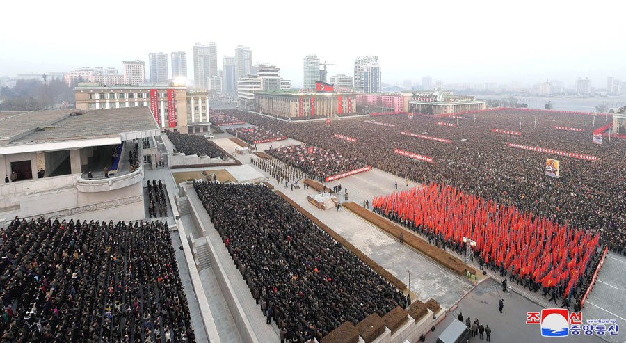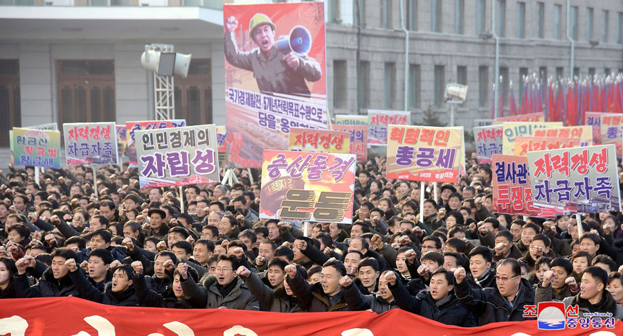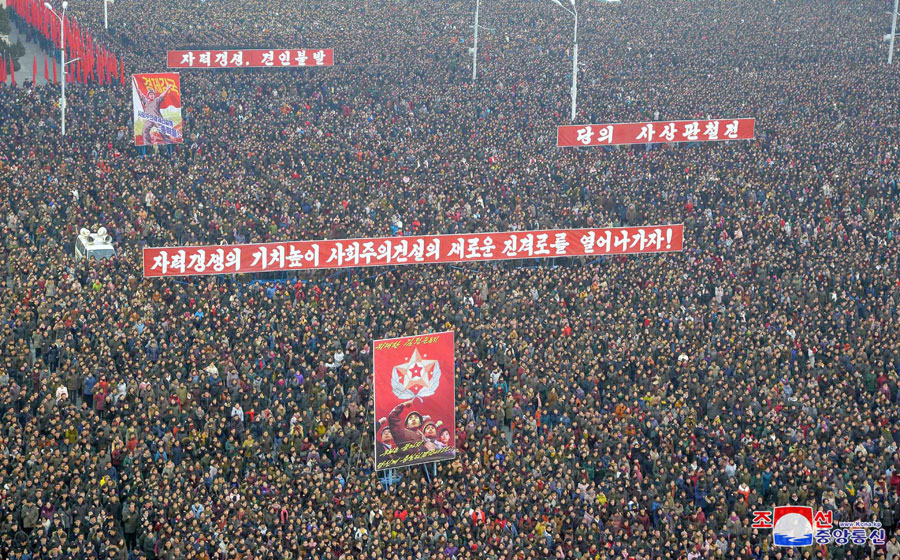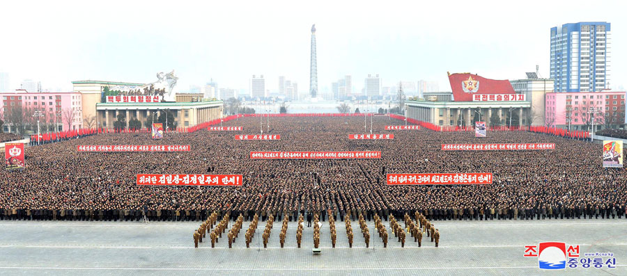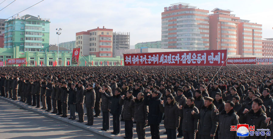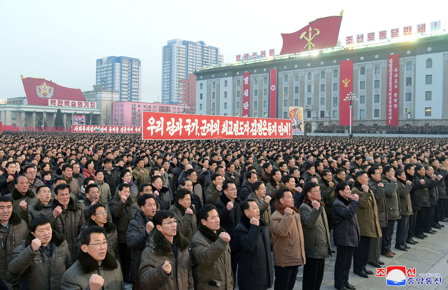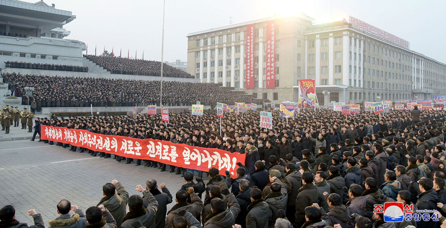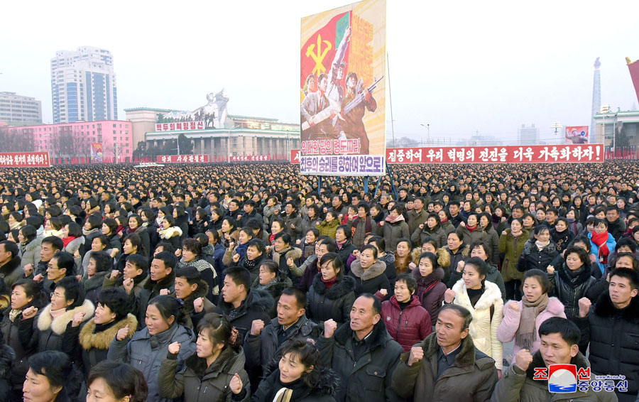 Pchjongjang, 5. ledna čučche 108 (2019) (KCNA) – V pátek 4. prosince se uskutečnilo masové shromáždění v Pchjongjangu na Kim Ir Senově náměstí, kde se účastníci zavázali, že důkladně provedou důležité úkoly, které stanovil vážený nejvyšší vůdce soudruh Kim Čong Un ve svém novoročním projevu.