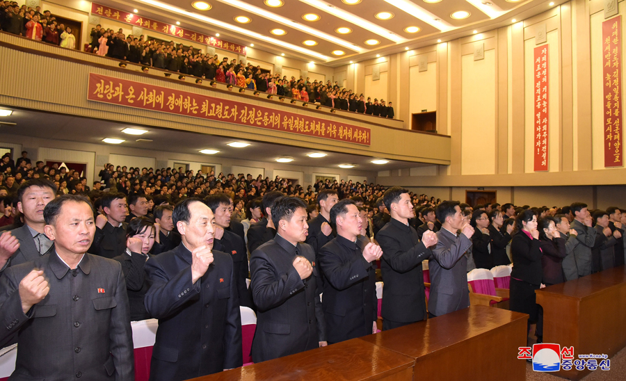 Soudruh Pak Čchol Min, první tajemník Ústředního výboru Kimirsensko-kimčongilského svazu mládeže, přednesl zprávu, následovanou projevy. Referent a řečníci uvedli, že novoroční projev váženého nejvyššího vůdce soudruha Kim Čong Una je inspirujícím praporem a cílem života a boje, protože dává obrovskou sílu a odvahu pětimilionovému mladému předvoji, který v letošním roce povstal do obrovského všeobecného pokroku. Poznamenali, že všechna mládež by se měla stát předvojem a údernou brigádou v úsilí o otevření nové cesty pokroku socialistické výstavby pod vztyčeným praporem soběstačnosti s nezměnitelnou vírou, že jistě zvítězí ve svém boji díky vedení váženého soudruha nejvyššího vůdce.