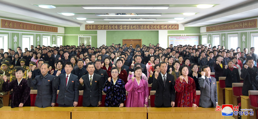 Pchjongjang, 9. ledna čučche 108 (2019) (KCNA) – Organizace pracujícího lidu pořádaly ve středu 9. ledna shromáždění k závazku důsledně plnit úkoly stanovené váženým nejvyšším vůdcem soudruhem Kim Čong Unem v jeho novoročním projevu.