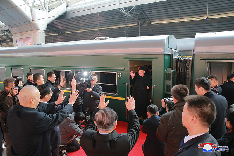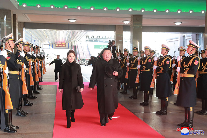 Vlak s váženým soudruhem nejvyšším vůdcem přijel do Tan-tungu, hraničního města Číny, ve 21:30 pekingského času 7. ledna. Vážený soudruh nejvyšší vůdce a jeho manželka Ri Sol Džu vystoupili z vlaku a radostně se přivítali s kádry čínské strany.