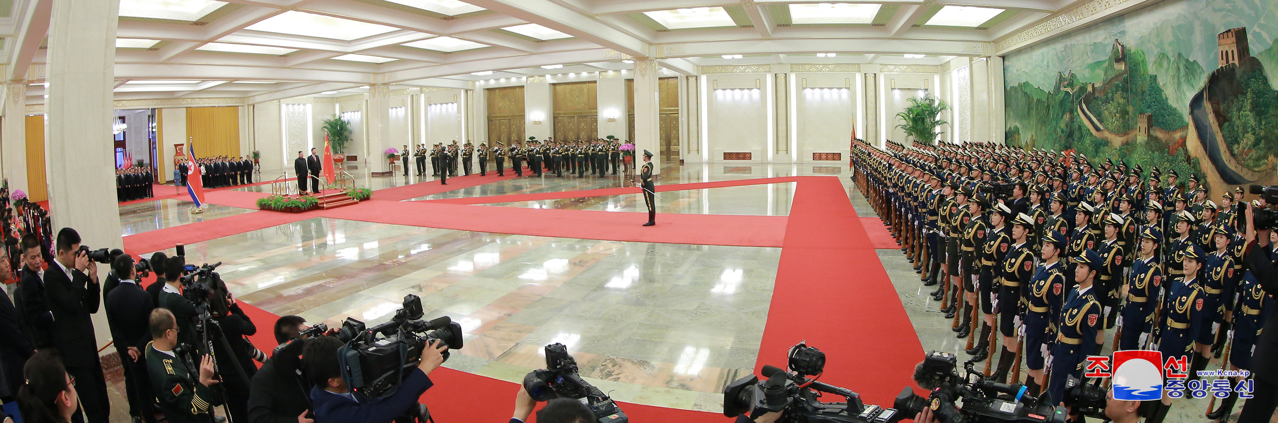 Ve Velké síni lidu se konal velkolepý uvítací obřad u příležitosti návštěvy soudruha Kim Čong Una v Číně.