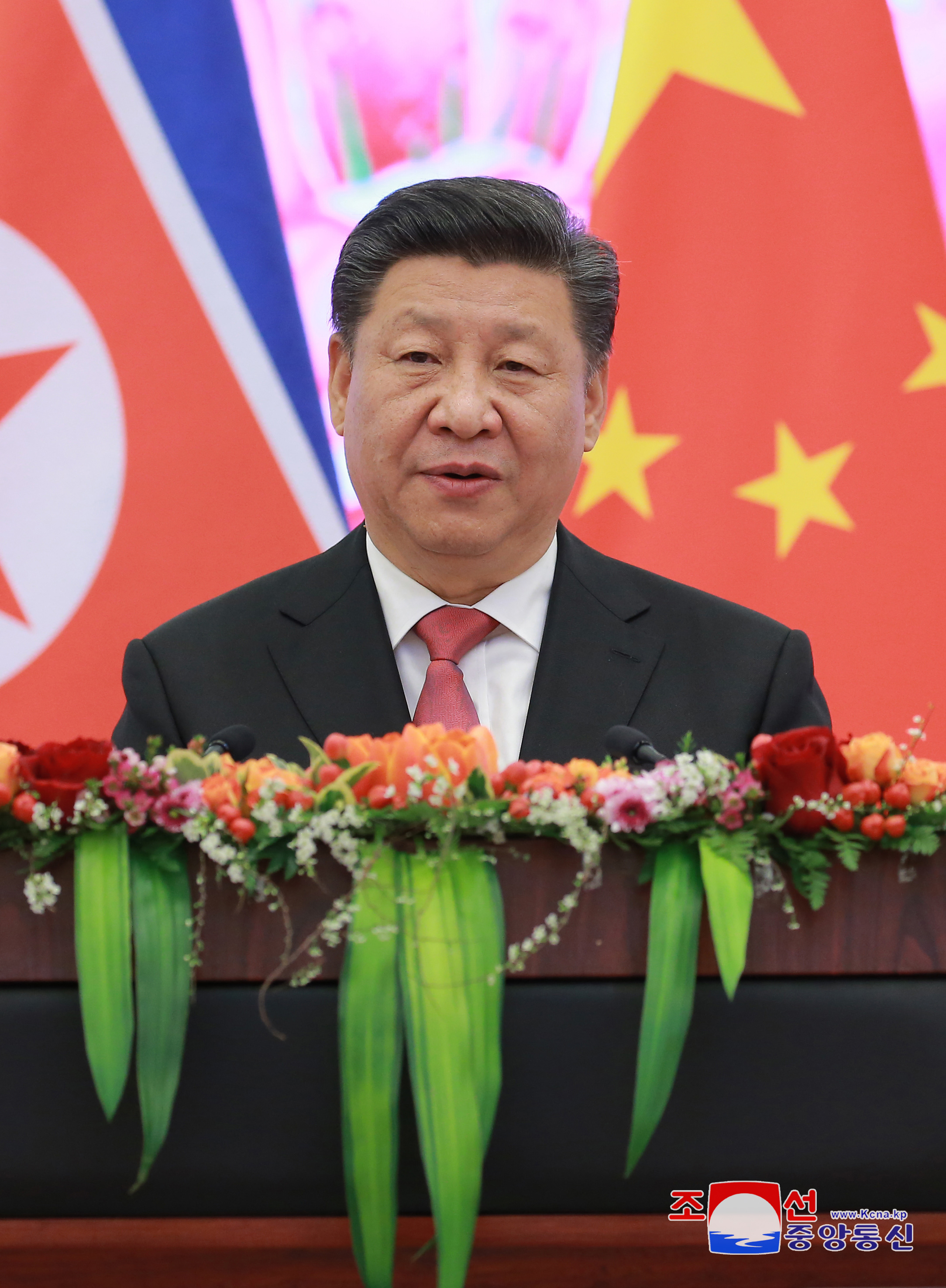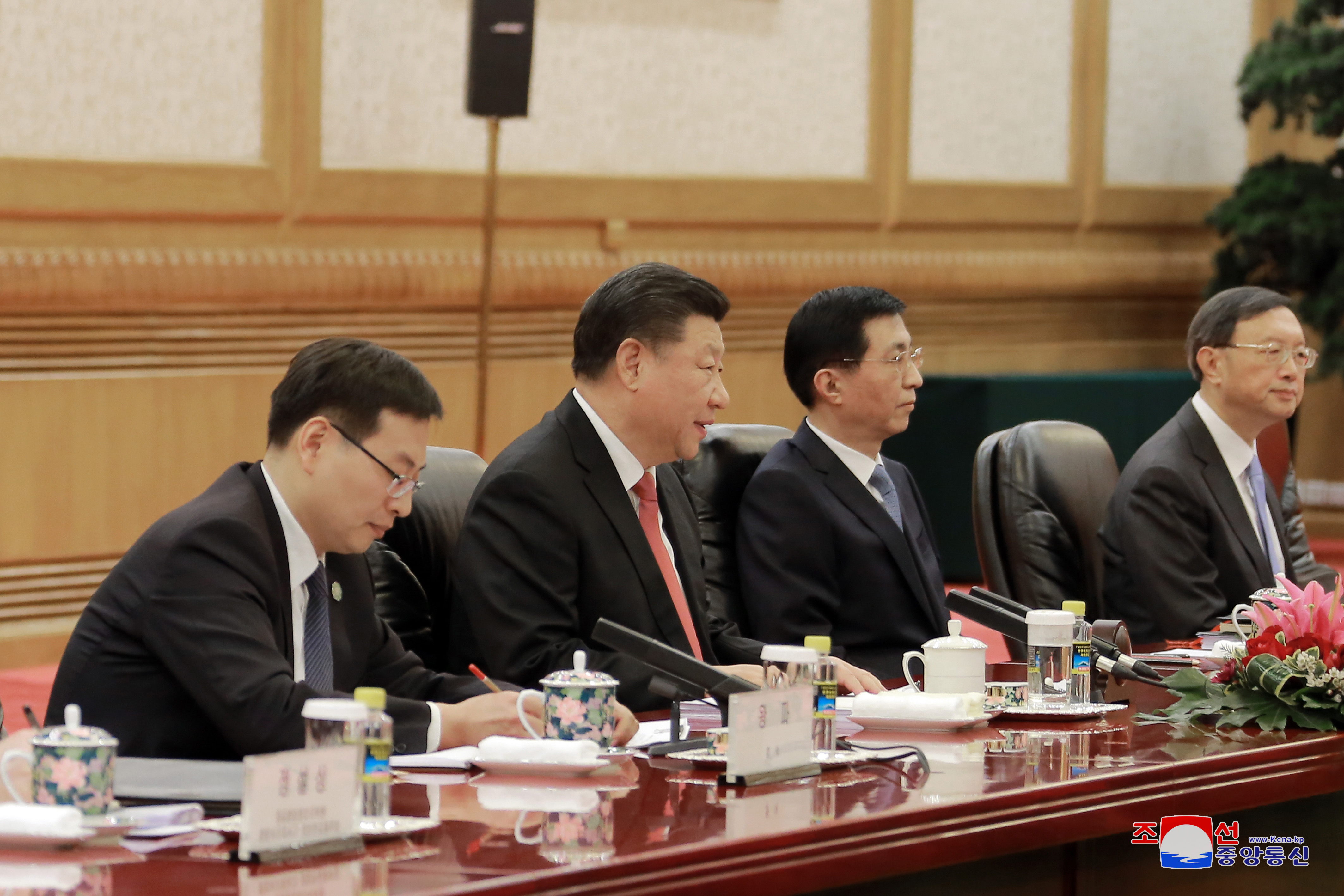 Soudruh Si Ťin-pching řekl, že plně souhlasí s tím, že zásadní otázky navrhované stranou KLDR jsou oprávněnými požadavky a racionální body jejího zájmu by měly být řádně vyřešeny. Zúčastněné strany by měly tomuto problému přikládat velkou důležitost a zvolit správnou metodu k jeho řešení. Pokračoval, že čínská strana bude vždy hrát pozitivní a konstruktivní roli při obraně základních zájmů obou stran a stability situace na poloostrově jako spolehlivý týl, věrní soudruzi a přátelé korejských soudruhů.