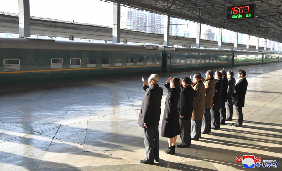 Na nádraží v Pchjongjangu delegáciu vyprevadili vyšší funkcionári ÚV Kórejskej strany práce ss. Kim Ki Nam, Kim Jo Čong, Kwon Hjok Bong a Ri Čchang Gun a ďalší. Delegáciu vyprevadil aj čínsky veľvyslanec v KĽDR Li Jin Jun a pracovník veľvyslanectva.