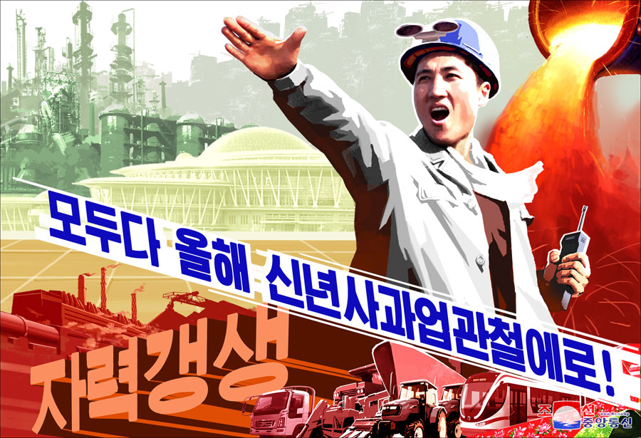 Pchjongjang, 23. ledna čučche 108 (2019) (KCNA) – V KLDR byly vytvořeny nové plakáty, aby inspirovaly lid k plnění úkolů, stanovených váženým nejvyšším vůdcem soudruhem Kim Čong Unem v historickém novoročním projevu.