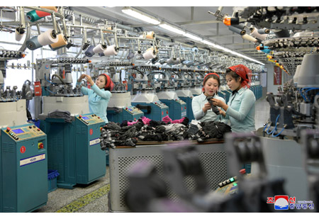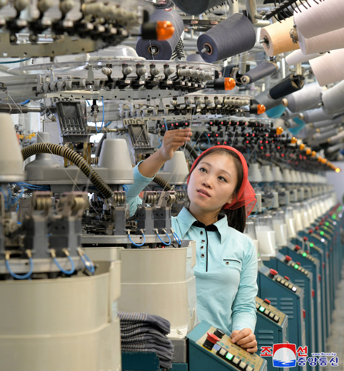 Pchjongjang, 27. ledna čučche 108 (2019) (KCNA) – Pracující Pchjongjangské továrny na ponožky v srdečné odezvě na historický novoroční projev váženého nejvyššího vůdce soudruha Kim Čong Una nárůstem zatížení strojů zvyšují výrobu.