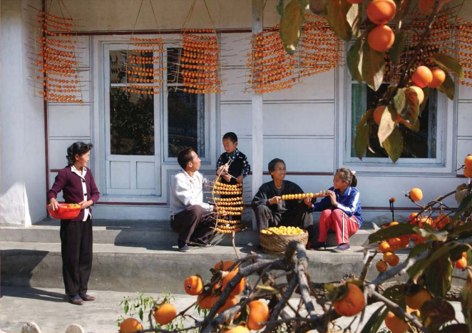 V polovici októbra sa všetci členovia každej domácnosti zhromaždia, aby sušili ovocie – to je ďalšia veľkolepá scéna tohto vidieckeho spoločenstva. Olúpané sušené kaki je obľúbenou potravinou kórejského ľudu pre svoj jedinečný vzhľad, chuť a vysokú výživovú hodnotu.