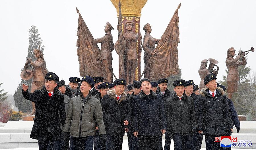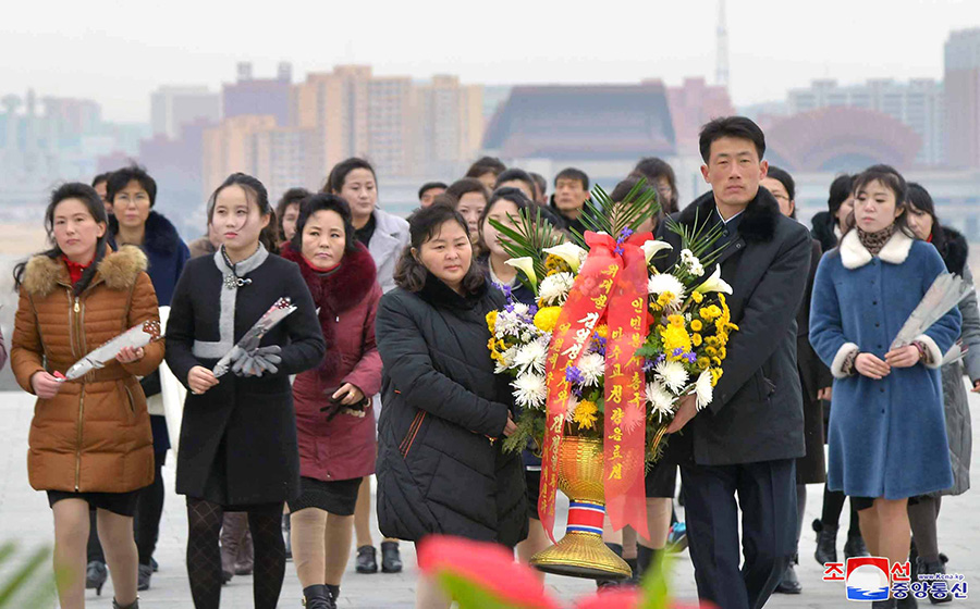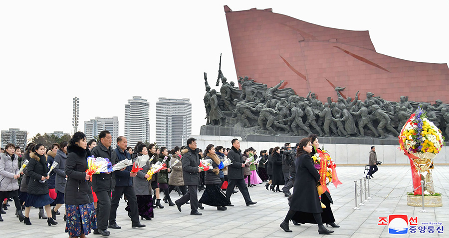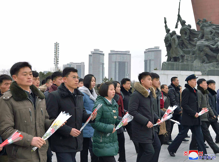 Pracující lid, studenti, školáci a sloužící mužstvo navštívili bronzové sochy velkých vůdců na kopci Mansude a jejich sochy a slunečně usměvavé portréty v různých částech země a vzdali jim poctu.