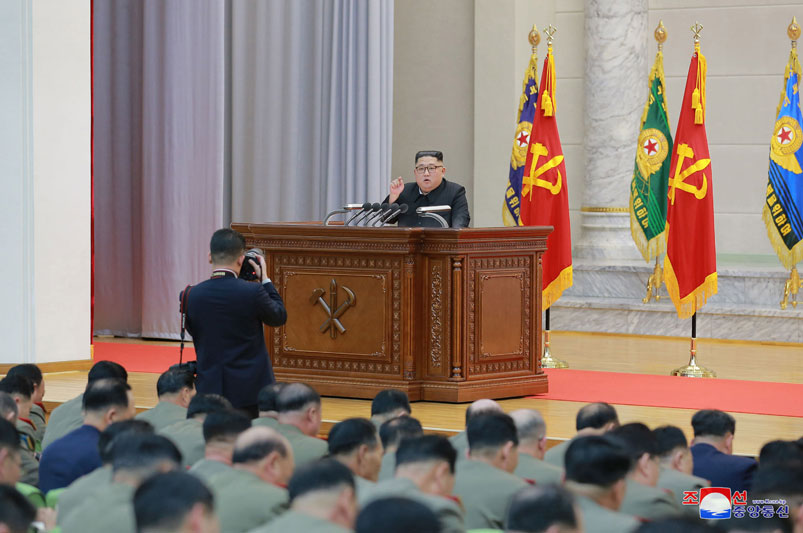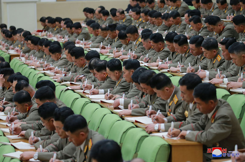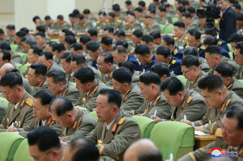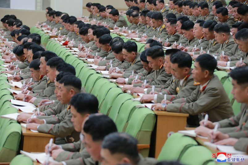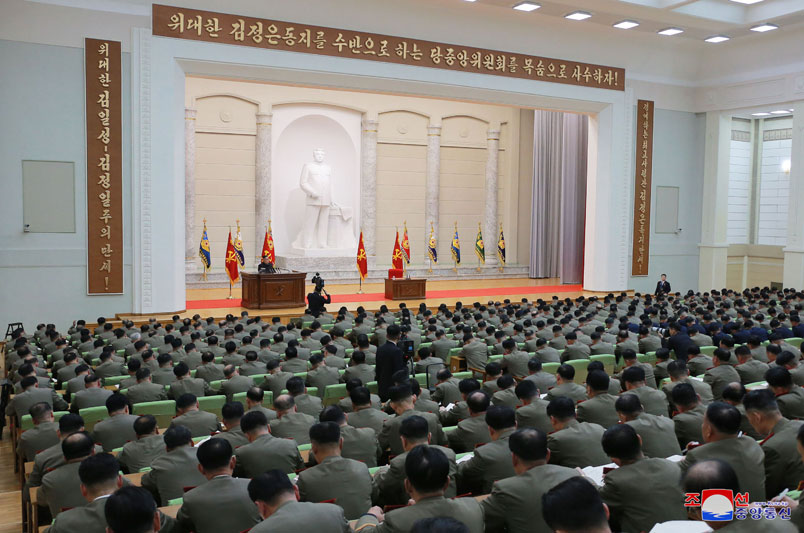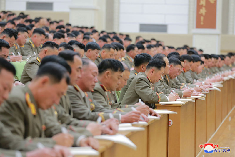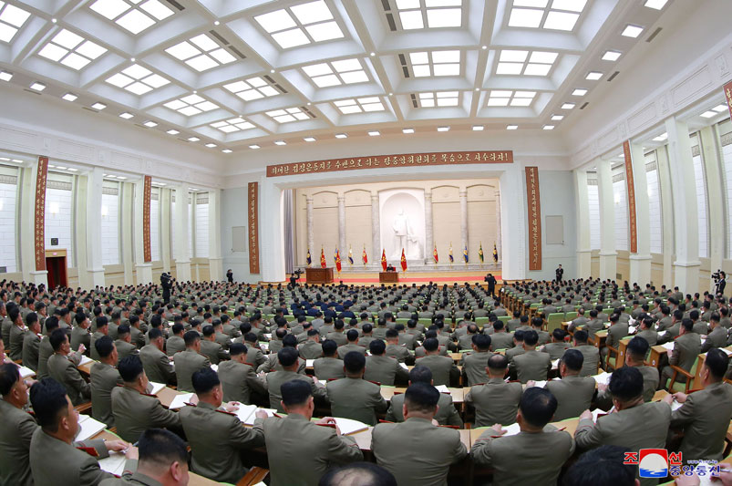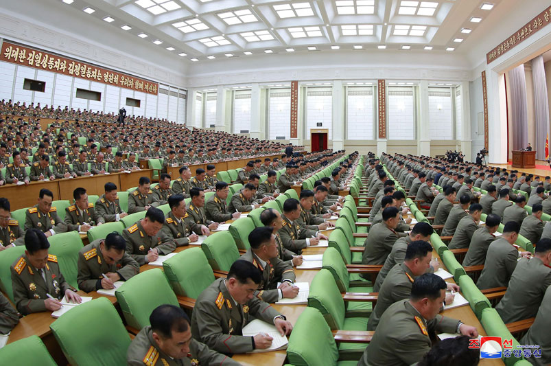 Vážený soudruh nejvyšší vůdce zdůraznil nezbytnost, aby lidová armáda v letošním roce uskutečnila velký skok vpřed a velké inovace v dějinách revolučního boje naší strany a dějinách budování armády, a tak splnila své historické poslání před érou a revolucí, a vytyčil bojové úkoly pro lidovou armádu. Zdůraznil, že ještě důkladnější ustavení monolitického systému stranického řízení v celé armádě je základní zárukou pro formování celé armády na principech kimirsenismu-kimčongilismu a dílem nejvyšší důležitosti pro osud země, revoluce a lidu.