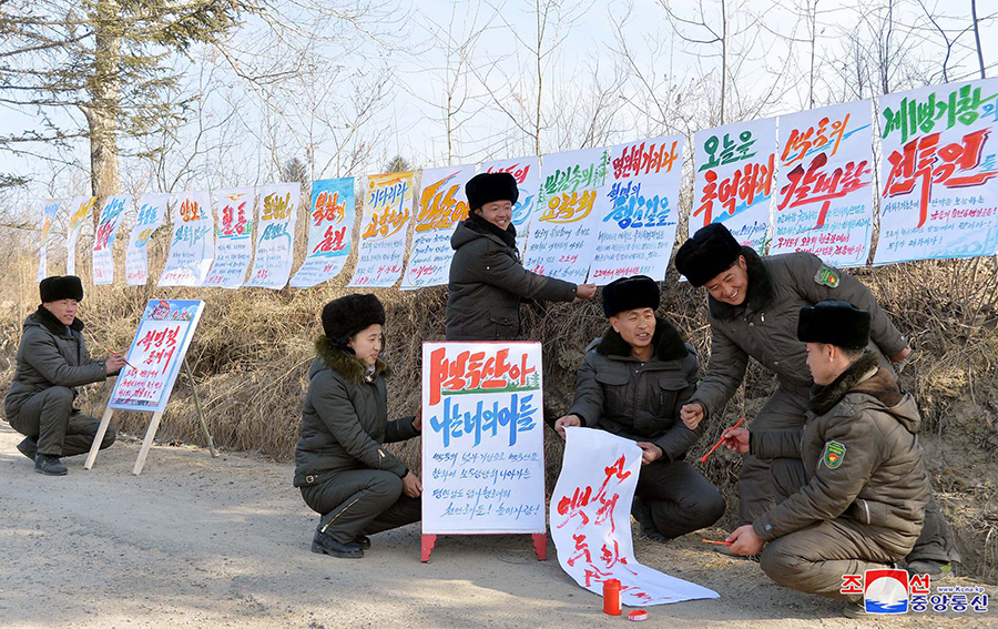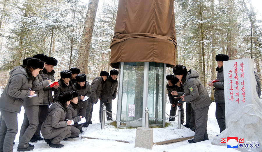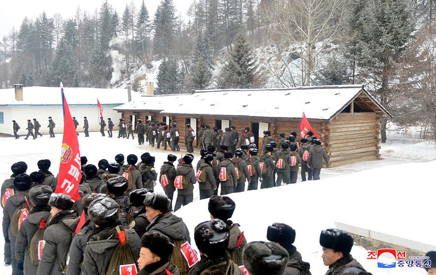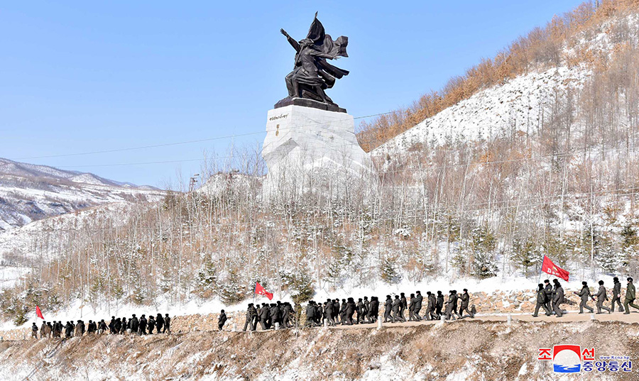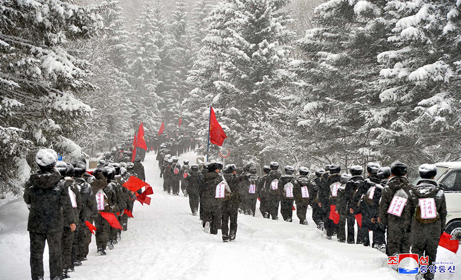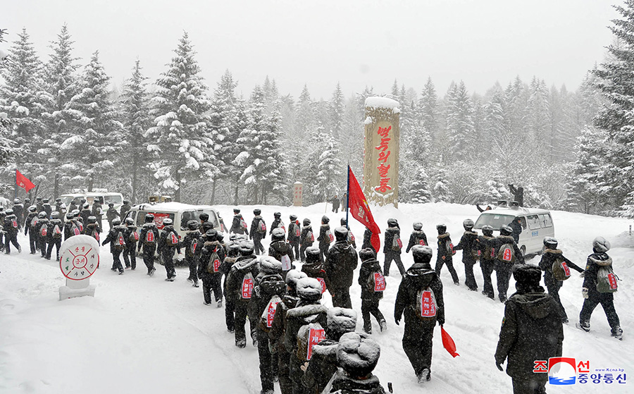 Hjesan, 9. února čučche 108 (2019) (KCNA) – U příležitosti 77. výročí narození velkého vůdce soudruha Kim Čong Ila se uskutečnil od 1. do 9. února pochod mládeže a školáků z celé země do jeho rodiště v Pektusanském tajném táboře.